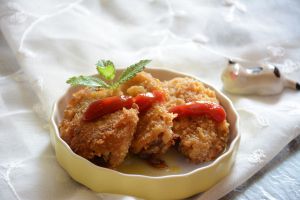 孩子吃不了辣,所以粘面,鸡蛋,面包糠