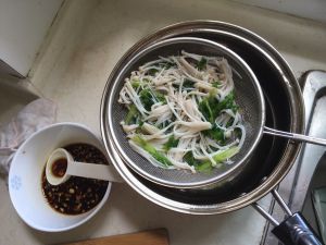 所有材料放入容器内,加生抽,盐,糖,醋,蚝油,蒜末,葱花等,根据自己口味加,还可以淋一点烧热的油,我没加,嘿嘿,无油版的凉菜