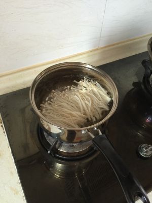 把金针菇放入煮沸腾的开水里,大火煮七分钟左右。