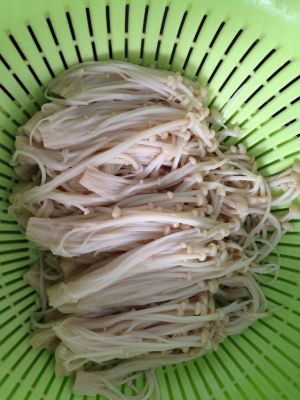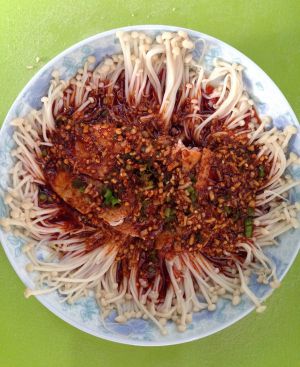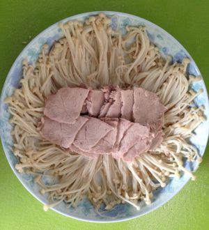 滴香油 拿锅热油 趁热浇到金针菇上 可以拿小葱什么的进行点缀 这样就可以了