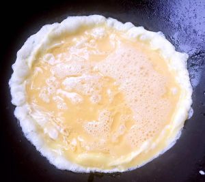 在锅中放入适量油,将鸡蛋放入锅中翻炒。