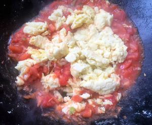 锅留少许油,炒西红柿,放入适量的盐,变软浓稠后加入鸡蛋一起翻炒,出锅。