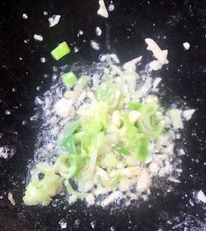 锅中再次倒入底油加热放入葱末蒜末爆香