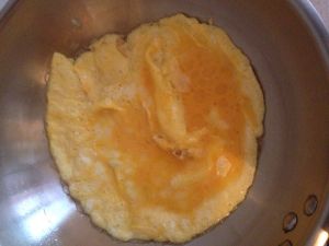 鸡蛋用筷子打散,油锅加热到入蛋液,中火双面煎好
