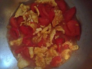 再起油,放入大蒜西红柿翻炒,放盐,炒散之后放入鸡蛋。翻炒一下,加糖,鸡精,加入水淀粉。片刻出锅!