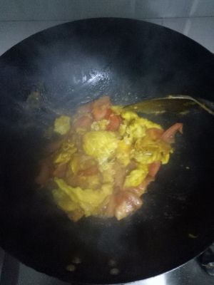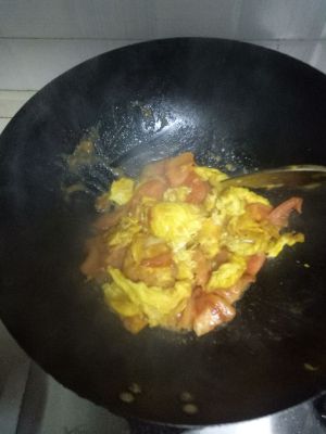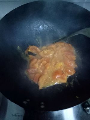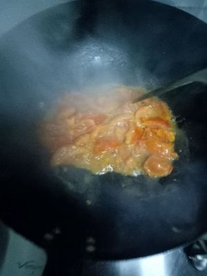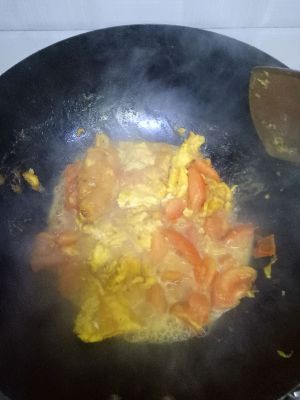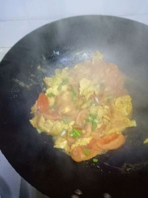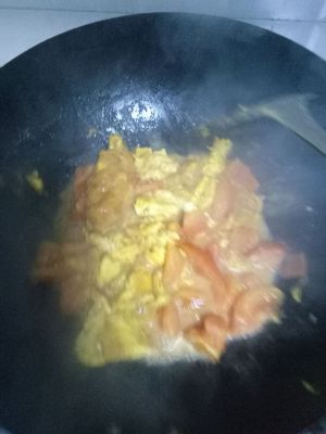 将番茄块倒入,大火翻炒1分钟,放入盐、鸡精、糖调味,搅拌均匀。加入鸡精让这道番茄炒蛋滋味更加鲜美,让人食欲大开。