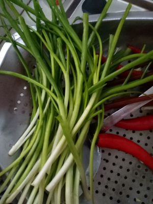 葱洗净,切段,(我是全都洗了,只选几根切小段就好)