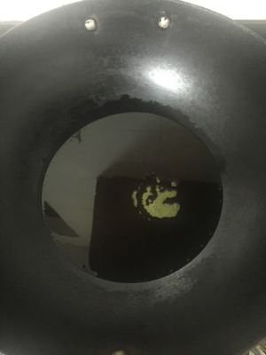 锅中倒入适量油,加热至锅中有青烟冒出。