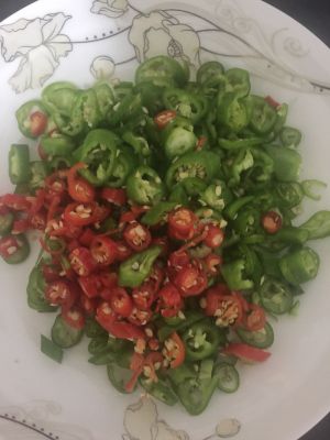 青红椒,我是湖南人所以爱吃辣椒,用量根据自己决定