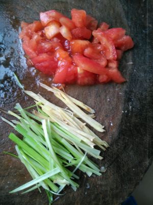 蒜切片葱姜胡萝卜切片(香菜切断家里没香菜了)
