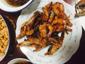 将虾分别炸两次 炸至金黄 换油 放入葱姜蒜爆炒 再次倒入虾 加入白糖 蚝油 酱油 海盐 加入少许矿泉水 收汁即可