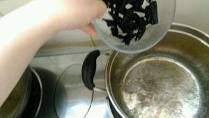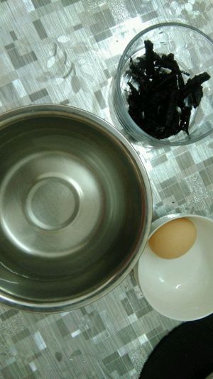 一包2元钱的紫菜分四五份,取一份洗净备用