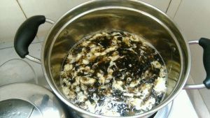 加入紫菜后,等待再次开锅,即可加入鸡蛋,
