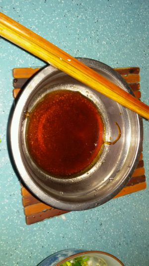 酱汁做好了,这一步,可能很多人会将汁做得太干,因为沟芡没掌握好,不用慌,如果太干,倒入一些开水,小火搅拌匀,酱汁好了的时候,倒入一点香油和蚝油,增加鲜味。