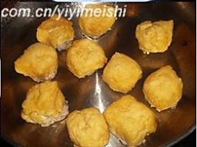 蚝油生抽盐淀粉加水,倒入锅中炒成汁,加入煎好的豆腐泡!翻炒均匀即可出锅!