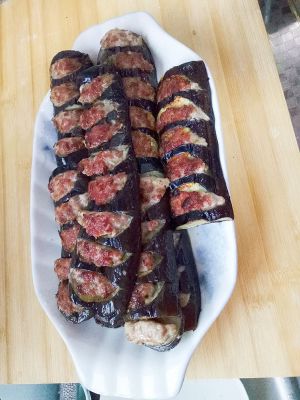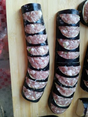 把肉馅酿到茄子里