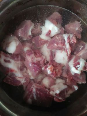 排骨切好,水煮30分钟,捞出洗净,沥干。