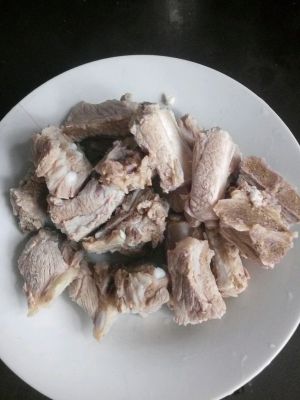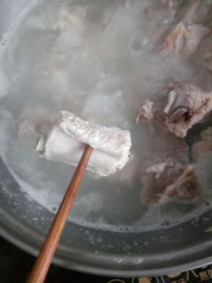再在锅中倒一锅开水炖排骨,炖至排骨能扎透。