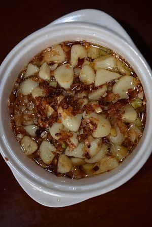 蒜泥用油炒至微黄