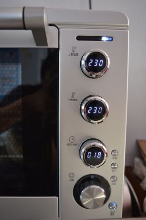 烤箱预热230度,把烤盘放入中层,上下火230度,18分钟。