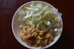把半棵葱和姜切成碎末。