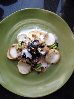 洋葱杏鲍菇蒜苔用胡椒油和柠檬腌制,