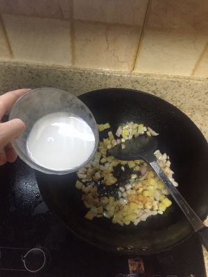 放入事先炒好的鸡丁倒入大半瓶纯牛奶