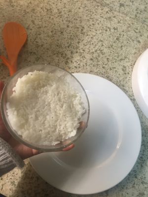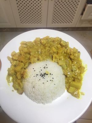 最后把蒸好的大米可以摆成你喜欢的形状,然后浇上做好的咖喱。