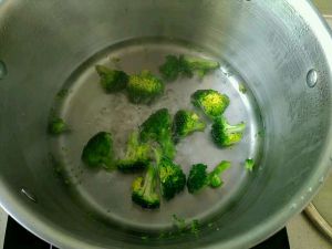 开水锅里放少许盐,西兰花放进去焯一下。放盐不仅西兰花色泽更亮,也会让西兰花入味。