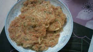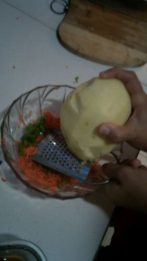 士豆洗净,去皮,擦丝,胡萝卜擦丝,too!