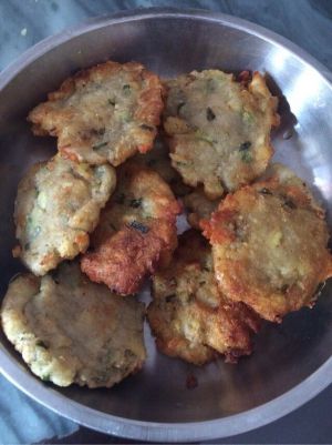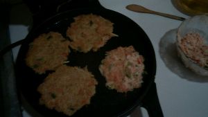 不沾锅热锅下油(小火),放入摁成饼状的粉团,煎至两面金黄即可!(粉团不要弄太厚,太厚中间不容易熟)