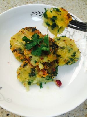 面饼不能太薄,容易碎,两面煎熟后就可出锅啦,一颗土豆就能做出三张饼,两人份