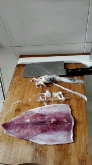 烧水焯一下鱿鱼,去腥。2分钟左右