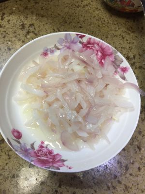 先把干鱿鱼泡发,多冲几次,不然会咸