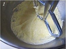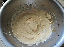 2根8盎司黄油加2杯细砂糖打发至颜色变浅,体积膨大,逐个加入4颗鸡蛋,搅拌至混合均匀,再加入1小勺香草精混合好。