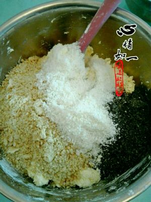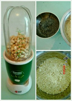 花生仁用料理机打几秒,打成带有少许花生粒,口感更好,同法把黑芝麻打成粉状。