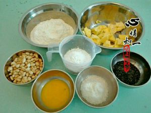 准备材料 生花生仁事先入烤箱上下火150度烤15分钟左右,去皮备用,芝麻同样事先烤熟。