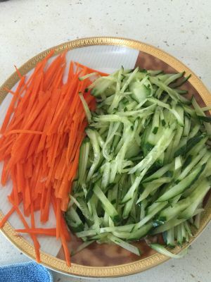 胡萝卜,黄瓜清洗干净后切成细条备用