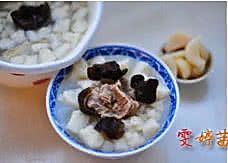 另外起锅把刚烧好的汤加入锅中,可以根据个人口味选择汤的量。放入掰好的馍,煮2分钟后加入木耳于粉丝。