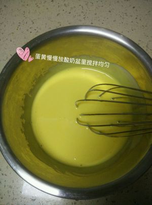 取3分之一蛋白倒入酸奶盆中搅拌均匀后,再把酸奶盆中食材全部倒入剩余的3分之2蛋白中[忘记拍照了]在充分搅拌均匀,要上下搅拌