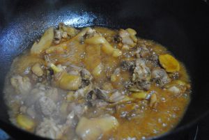 打开锅盖,翻动,见汤汁均匀裹在鸡块和板栗上,收开汤汁即可。
