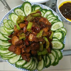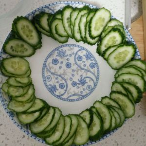 之前有说我都没排盘不好看,今天切了个黄瓜排,不过一个切了快半小时了。学做菜的时候没学切。