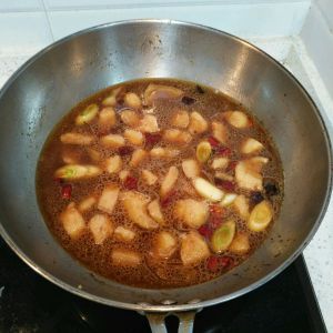 再入葱,姜,蒜及所有調味料炒出香味后,加适量清水。
