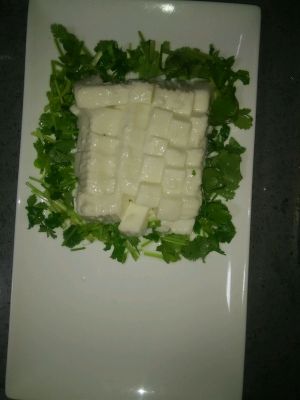 内酯豆腐切成片摆盘