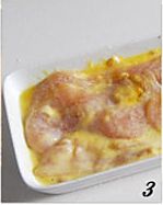 将鸡肉片成厚一些的片,用刀尖在鸡肉正反两面上划几刀,不要划透
