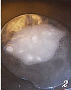 戴冒泡后放入白糖,盐搅匀后煮开后,淋入水淀粉勾芡