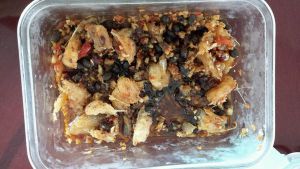 把鱼捞出,开小火把蒜姜辣椒放进锅里翻炒一下。放豆鼓,放盐鸡精酱油放鱼,没啦