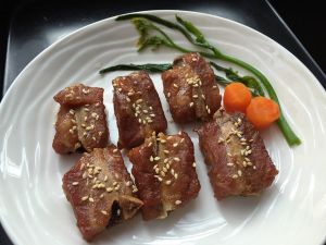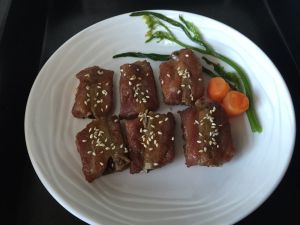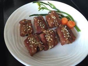香喷喷的蜜汁叉烧肉出炉了,切片浇汁便可上桌享用了。