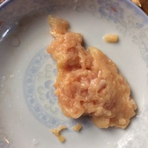 把鸡肉泥和花菜和米一起加入适量水。放到压力锅按八宝粥按钮就可以了。