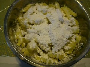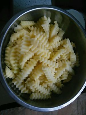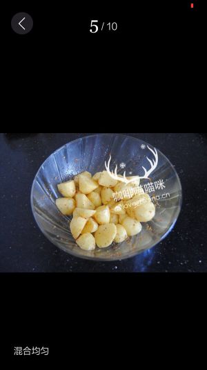 土豆切块或切片,加入胡椒粉,孜然粉,食用盐,10克食用油,搅拌均匀,静置半小时入味